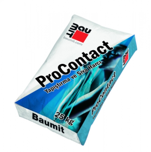 Çimento esaslı, nefes alma kabiliyeti yüksek, polimer takviyeleri ile yüksek tutunma gücüne sahip ısı yalıtım plaka yapıştırıcı ve sıvasıdır. Suya, neme ve darbelere dayanıklı, uygulamada kolaylık sağlayan, makine ile de uygulanabilen ProContact, Baumit Pro Dış Cephe Isı Yalıtım Sistemi’nin bileşenidir. Tüm ısı yalıtım plakaları ile XPS subasman plakalarının yapıştırılmasında, plaka yüzeylerinin sıvanmasında ve Baumit StarTex cam elyaf tekstil donatı filelerinin yerleştirilerek donatı katının oluşturulmasında kullanılır.